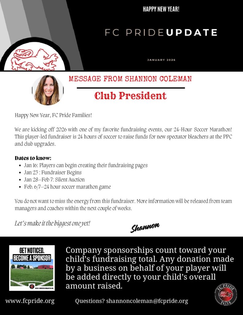 See attached letter for club updates 2026. Happy new year FC Pride Families. Newsletter January 2026 (1)